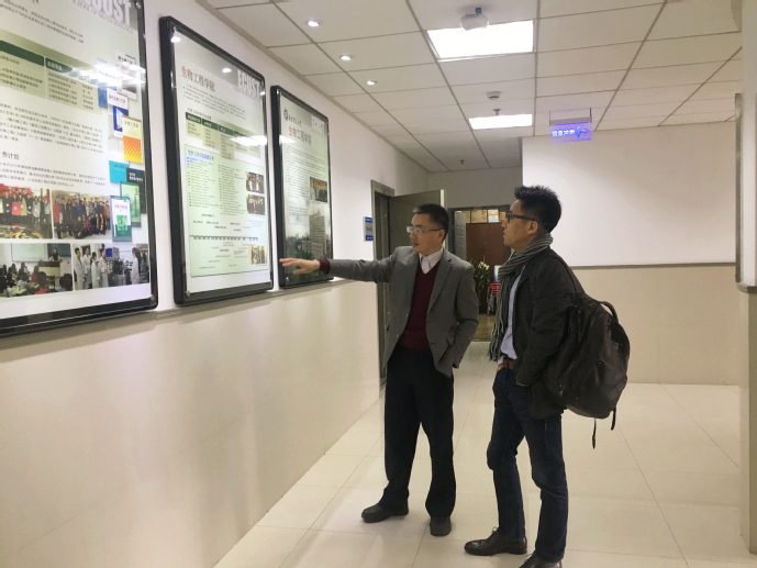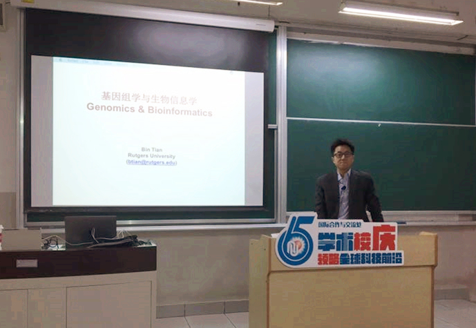 2017年11月11-17日,beat365官网杰出校友、罗格斯大学田斌教授应我院应用生物学系邀请,回母校进行交流与授课。在陆兵书记陪同下,田斌教授参观了生物反应器工程国家重点实验室,并为我院近些年取得的巨大成就而感到欣喜。随后,田斌教授给我院研究生进行了“基因组学与生物信息学”的课程教学,为同学们展示了基因组学研究中生物信息学技术的应用,同时介绍了RNA加工中最新研究热点,课程极大地开阔了同学们的视野,课内田斌教授与同学们就学术问题也展开了热烈的讨论,同学们纷纷表示受益颇多。期间,田斌教授在吴海珍教授、范立强副教授的陪同下参观了奉贤新校区,见证着母校的蓬勃发展,田斌教授谈到每次回母校都为母校的发展而自豪,表示希望能通过努力搭建华理与罗格斯大学学生联合培养及学术交流的平台,为母校的发展添砖加瓦,也祝愿母校越来越好。