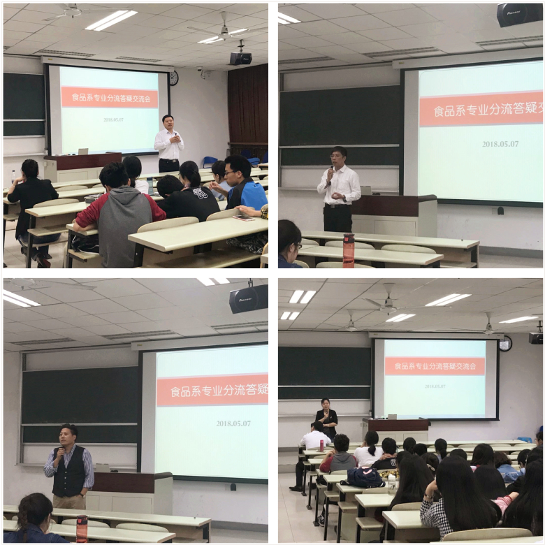 2018年5月7日下午,我院食品科学与工程系在奉贤校区D102召开2017级专业分流答疑交流会。
