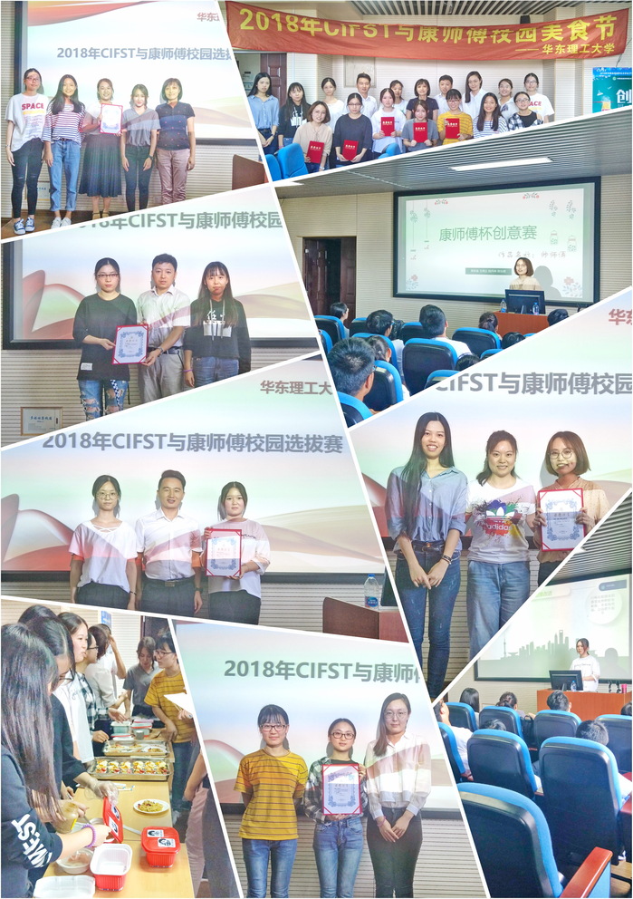 9月28日,2018年CIFST与康师傅校园美食节在奉贤校区实验七楼601成功举办。本次大赛由中国食品科学技术协会,康师傅控股有限公司与beat365平台唯一官网食品系联合举办,食品系刘卫兵老师和17级辅导员徐亚飞老师共同组织了此次美食节暨校园选拔赛。食品系主任谢静莉副教授,食品系周英副教授,刘卫兵老师,赵梦瑶博士,17级辅导员徐亚飞以及部分学生代表组成评委团,对5支参赛队伍的成果进行评定。