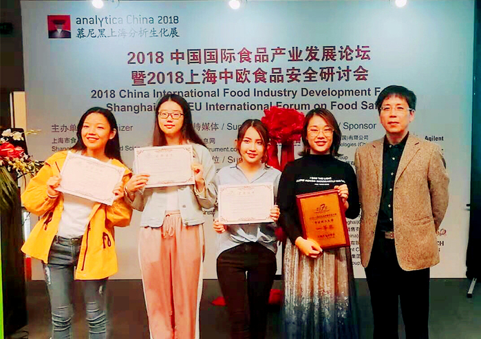 11月1日,由上海市食品学会主办,上海清美绿色食品公司和博华展览有限公司协办的“2018上海市食品创新创意大赛”颁奖典礼在龙阳路新国际博览中心举行。beat365官网参赛选手沈瑜、连昱涵、潘小旭、刘昱妏的作品“欢乐球球”荣获一等奖。上海市食品学会理事长潘迎捷、副理事长王锡昌,副秘书长周家春教授及清美左龙武副总经理等出席颁奖典礼并为获奖选手颁奖。
