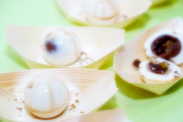 beat365官网沈瑜团队在食品科学与工程系教授周家春老师的指导下,利用海藻酸钠和果汁制成可食用薄膜,将果汁、坚果、豆腐布丁三种口感不同且营养丰富的食材分层包裹成一个球体,使口感多元化,增加食用趣味性,亦可带给消费者全新的味觉体验。而在早前七月决赛展示中,“欢乐球球”凭借独树一帜的结构和妙不可言的口感,引起了评委浓厚的兴趣,也收获评委、其他参赛选手的一致好评。