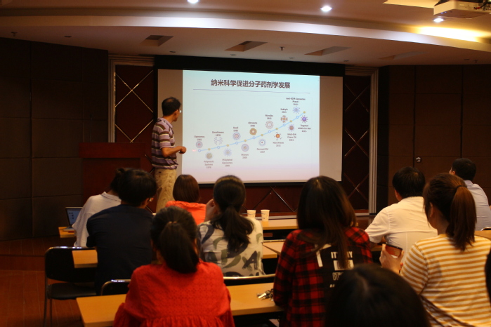 报告会上,黄永焯研究员深入浅出地介绍了肿瘤治疗方面的研究进展,现阶段耐药性已成为肿瘤治疗的主要障碍,并详细介绍了目前肿瘤治疗的重要技术—基于纳米技术的联合药物治疗技术,提出了基于递药技术探索克服肿瘤耐药的新治疗策略,以靶向肿瘤微环境,调控巨噬细胞,来克服肿瘤耐药,黄永焯研究员还分享了课题组取得的重要研究成果,为参会师生提供了新的研究思路,大家受益匪浅。