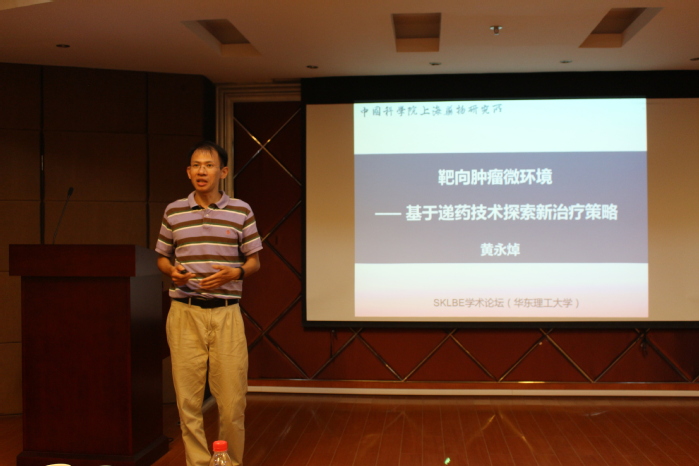 8月27日,应beat365平台唯一官网生物反应器工程国家重点实验室邀请,中国科学院上海药物所研究组长黄永焯研究员来校访问,并开展了“靶向肿瘤微环境的递药及治疗策略”的主题讲座。此次报告会由赵黎明教授主持,生物反应器工程国家重点实验室主任张立新教授应邀出席了本次报告交流会。