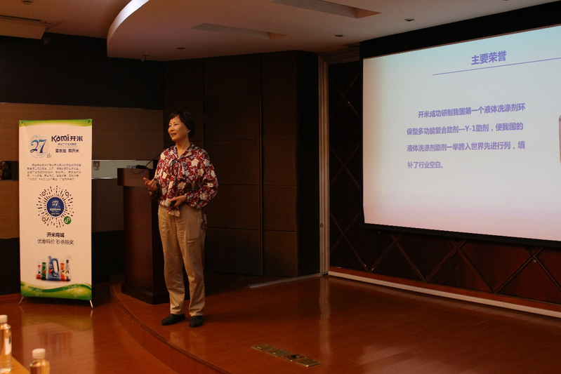 于文董事长向我们介绍了开米公司的创办史、发展史以及三个“第一瓶”产品——浓缩洗衣液、蔬果清洗剂和洗手液的诞生故事。27年来,于文董事长始终坚持战斗在研发、生产的第一线,她所创建的“开米”已成为“绿色环保、专业健康”民族洗涤品牌的标志性代表。
