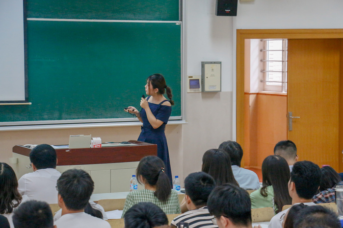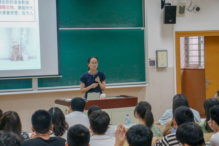 郁惠蕾副院长介绍学院研究生培养和学生管理情况。郁老师首先赠与全体新生“志存高远、脚踏实地”这八个字,希望全体新生能立志且立大志,并以实际行动一步一个脚印的奔向自己的理想。随后郁老师对研究生培养相关的各项内容、学校学院在奖学助学上的政策及学生日常管理方面的事宜进行了详尽的讲解,帮助新生尽快了解新阶段的任务,适应新身份的学习生活。