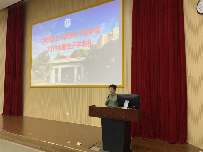 新生代表食品类193班王可心同学分享了报考生工学院的缘由以及为“生物工程创造美好未来”贡献力量的愿望。