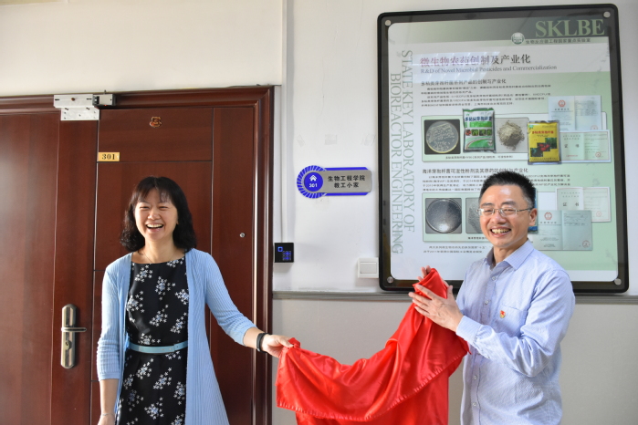 在新中国成立70周年生日即将来临之际,beat365平台唯一官网工会举办了新教工小家装修落成仪式。校工会常务副主席朱姝与beat365平台唯一官网党委书记陆兵共同为生工学院新教工小家揭牌。
