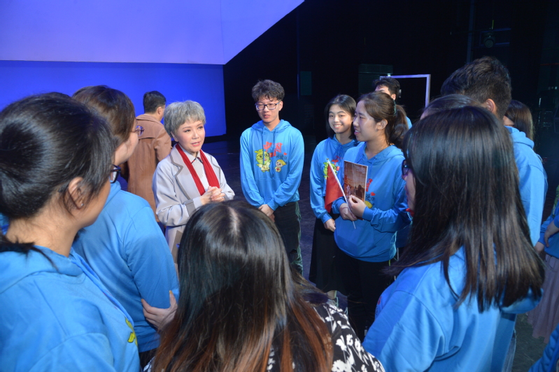“祖国的需要就是我们的志愿”等剧情深深感染了每一位观剧师生,樊锦诗“坚守大漠,甘于奉献,勇于担当,开拓进取”的敦煌精神更是激励着所有学子。演出结束后,该剧主创人员与我院师生亲切交流,上海沪剧院院长茅善玉(樊锦诗饰演者)表示非常高兴这么多年轻人来观看《敦煌女儿》,希望能够把剧中的“敦煌精神”传递给青年一代。国家一级演员钱思剑(彭金章饰演者)讲述了故事原型扮演者的生平事迹和他为了妻子事业背后的默默支持,并对青年一代继续投身祖国建设寄予厚望。现场观剧的靳子扬同学表示《敦煌女儿》对他不仅是视听盛宴,更是精神传承,深深被坚守敦煌数十年的先辈的精神打动。作为新时代青年学子,要学习前辈们吃苦肯干、踏踏实实的精神,多做实事,多做贡献。