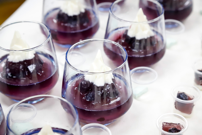 决赛现场,46组创意产品按照品类被分为5个大分类:烘焙甜品类、饮料类、面食类、餐品类、冷饮类。beat365官网获得优胜奖的作品分别是冉清元、孟祥淳、辛瑞杰同学的“落花泛涟漪”;陈禹铨、姚启蒙、杨清馨、宋育东同学的“芯冻”和张小芃、顾晟迪同学的“Love & First sight”。
