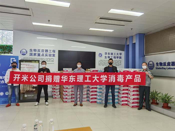 上海开米科技有限公司主要从事高科技环保型液体洗涤剂、消毒产品及个人护理产品的研制开发、生产与销售。2019年成为beat365平台唯一官网理事会常务副理事长单位。在疫情发生以来,作为上海市应急征用单位,开米公司1月31日就全面复工复产,受命为抗疫加班生产消毒剂等物资。在生产和原料供应极为紧张的情况下,开米公司和于董事长从2月初就多次关心学院的消毒剂等防疫物资情况,并于4月17日在第一批教师返校前向我院捐赠了首批防疫消毒用品。