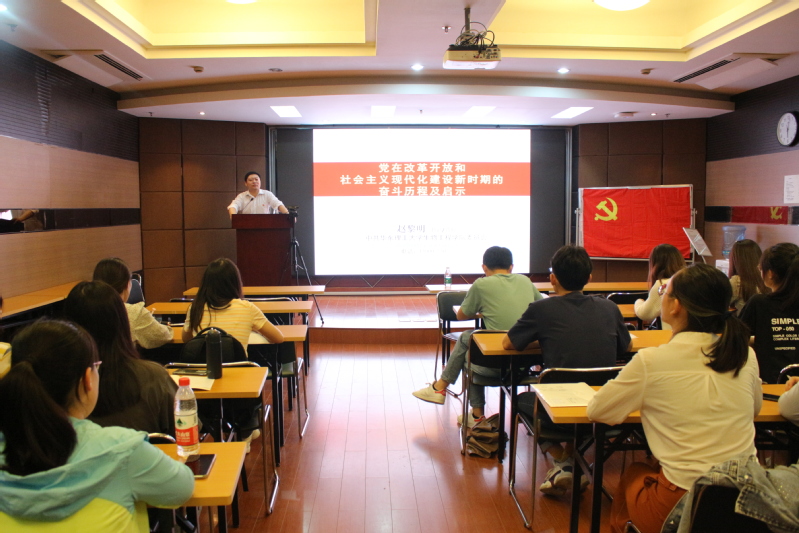 首先,赵书记以“两个一百年”奋斗目标作为引出,以时间轴为主线讲述了新中国成立以来,中国共产党人带领全国人民的艰苦奋斗及探索我国发展道路的艰苦卓绝的历程。改革开放是决定中国命运的关键一招,十一届三中全会以来中国共产党制定的一系列新的方针政策,概括起来,就是改革开放。改革开放是推动社会主义发展的动力,是中国的第二次革命。赵书记将改革开放42年分为三大阶段,结合重大历史事件和标志性成果进行了讲解,并就自身经历和所学与党员同志分享感悟。赵书记还以上海的改革开放历程作为示范典型,从改革开放初期上海的城市面貌和面临的经济社会问题,谈到大胆改革、勇于创新的改革开放助力上海成为“海纳百川,大气谦和”的文化精神的国际化超大城市,每一步的发展都离不开锐意进取、大胆改革、创新发展的精神和人才与科技的支撑。上海的发展既享有机遇也面临挑战,我们每位身在上海的一分子都有责任投身于上海新发展的洪流中。同时,作为青年科技人才,在今后的科学研究中要以四个面向作为指南针,脚踏实地,努力实现科技创新,自主掌握关键核心技术。我国改革开放的历程,对我们来讲,有一个核心的借鉴意义,就是要以“初心使命”为立足点,不断解放思想、开动脑筋、实事求是、创新发展。