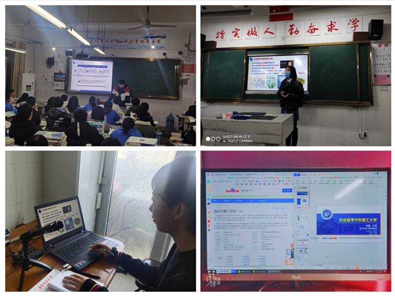 乡约华理情,感恩母校行。35支实践团队共75名生工学子通过线上线下相结合的方式重返母校看望恩师、宣讲华理,与学弟学妹交流学习经验、总结成长感悟、分享备考和报考志愿的心得体会,助力学校招生工作。1月28日,“与‘理’同行”实践团队成员赴各自的高中母校,对华理开展全面宣讲,介绍了自己在生工学院的学习和生活,在华理与母校间搭建起了沟通的桥梁,共建美好未来。
