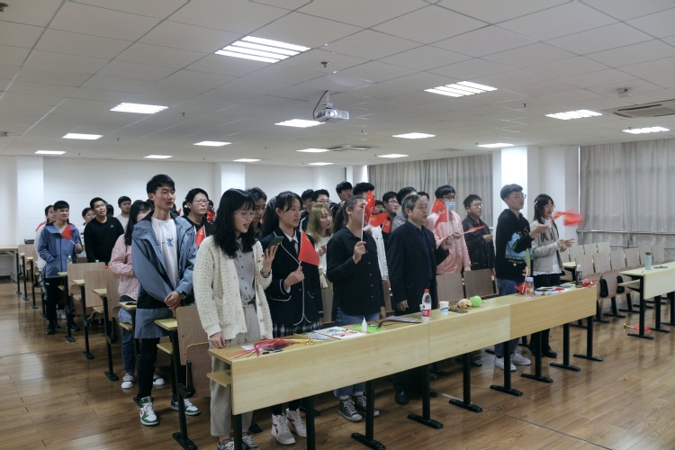 最后,张元兴教授和同学们一起合唱红歌《没有共产党,就没有新中国》,一起表达对中国共产党的敬意。然后师生一起制作红旗,五人为一组,用自己亲手制作的红旗向建党百年致敬。