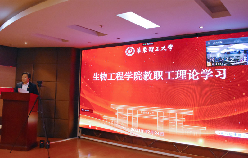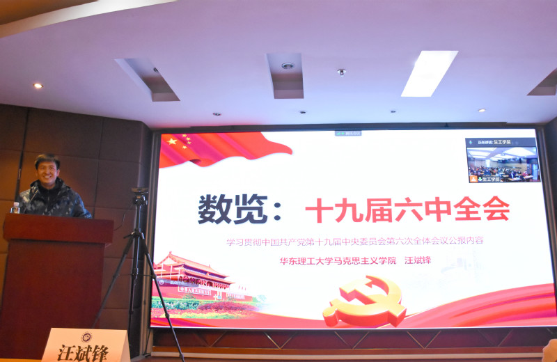 为进一步深入学习宣传贯彻十九届六中全会精神,深化和拓展党史学习教育,12月24日下午,beat365平台唯一官网特邀学校学习贯彻党的十九届六中全会精神宣讲团成员、马克思主义学院副院长汪斌锋作题为“数览十九届六中全会”的报告。beat365平台唯一官网党委书记吴辉主持报告会。beat365平台唯一官网领导、教工党支部书记、生工系教师、应用生物学系教师、食品系教师和学院办公室教师现场参加报告会,其他教师通过腾讯会议在线参加。