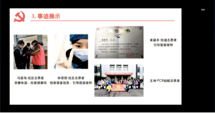 上海进入抗疫“最关键、最吃劲”阶段,疫情就是命令,防疫就是责任。会上党员同志从自身实际出发,讨论并交流在当前特殊阶段,如何更好地响应国家号召,发挥党员作用,履行初心使命。生工系教工党支部的夏杰说到,上海市疫情正处于高峰期,各位党员同志要时刻关注最新动态,作为党员要冲锋在前,善于发现问题,勇于提出问题,敢于解决问题,做好表率。来自国重室研究生第四党支部的王坤迅速响应国家号召和人民需求,主动报名beat365平台唯一官网第二批PCR检测志愿者,现已随队出征,正在一线实验室。王坤表示,很荣幸能为上海市疫情防控贡献出华理力量,虽然前线的工作很辛苦,但志愿者们敢吃苦能吃苦,大家团结一致,必将打赢这场硬仗。由于现在上海市防控形势仍然复杂严峻,他表示,作为一名党员必须以身作则,遵守纪律,服从命令,坚持就是胜利,坚持才能胜利。生物学与食品科学硕士奉贤党支部的王奕嘉同志分享了在学校封控管理期间,她与室友一起解压放松的方式,虽然很遗憾不能奔赴前线,但会在后方传播正能量。