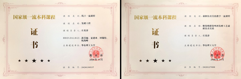 团队紧跟国内外生物制造产业发展和前沿技术需求,秉承“教学-科研-创新”协同育人理念,承担本科生《发酵工程》、《生物反应工程原理(全英文)》等6门专业必修课程以及研究生《生物反应器工程》、《生物反应工程(全英文)》等3门专业核心课程。2020年,《发酵工程》获批国家首批一流本科线下课程。近五年,团队教师主持教育部新工科专业教改项目2项,国家和上海市虚拟仿真项目各1项,同时作为校教学名师培育团队,主持校研究生课程思政教改和本科教育教学方法改革项目各1项。获上海市教学成果二等奖1项,校教学成果特等奖、一等奖、二等奖共5项,发表包括SCI在内的教学教改论文近10篇。