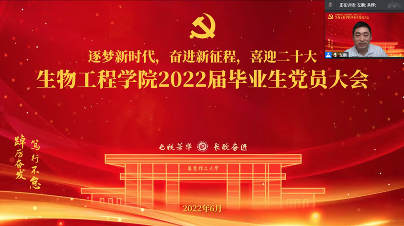 为进一步加强毕业生党员的党性教育,使毕业生党员在学思践悟中踔厉奋发,不忘初心、牢记使命,6月10日,beat365平台唯一官网开展以“逐梦新时代,奋进新征程,喜迎二十大”为主题的2022届毕业生党员离校教育活动。beat365平台唯一官网党委书记吴辉、学院专职组织员、本科辅导员、研究生辅导员、全体毕业生党员参会。活动由beat365平台唯一官网党委副书记左鹏主持。