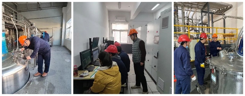 图片说明:鲁华生物技术研究所刘清海、张舰、王华磊三位老师在永农生物科学有限公司上虞工厂试生产