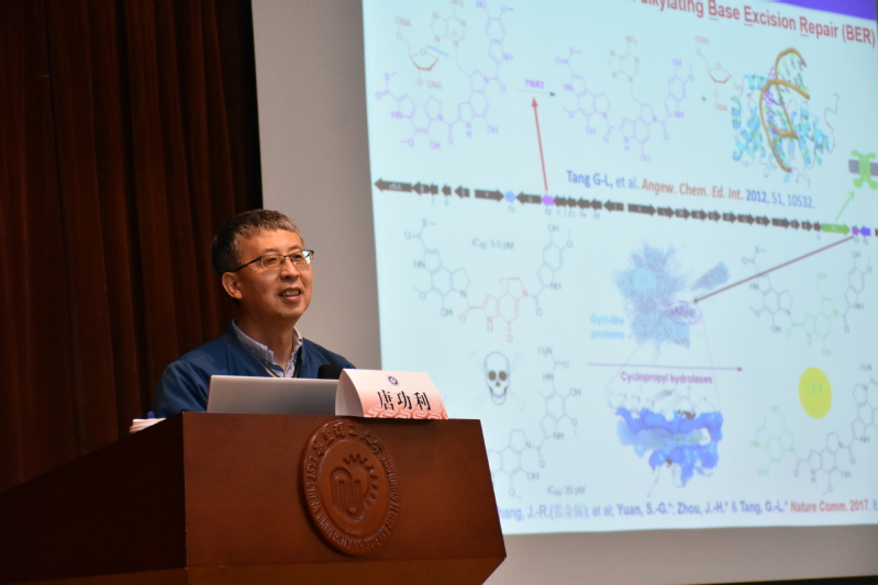 3月21日上午,由研究生院主办、beat365平台唯一官网承办的“名师讲坛”学术活动在奉贤校区敬贤堂如期举办,本次讲座特邀中国科学院上海有机化学研究所唐功利研究员,分享了“高活性DNA烷化剂生物合成中自抗性机制研究”。本次讲座共有190余名师生线上线下积极参与,讲座由beat365平台唯一官网副院长郑高伟教授主持。