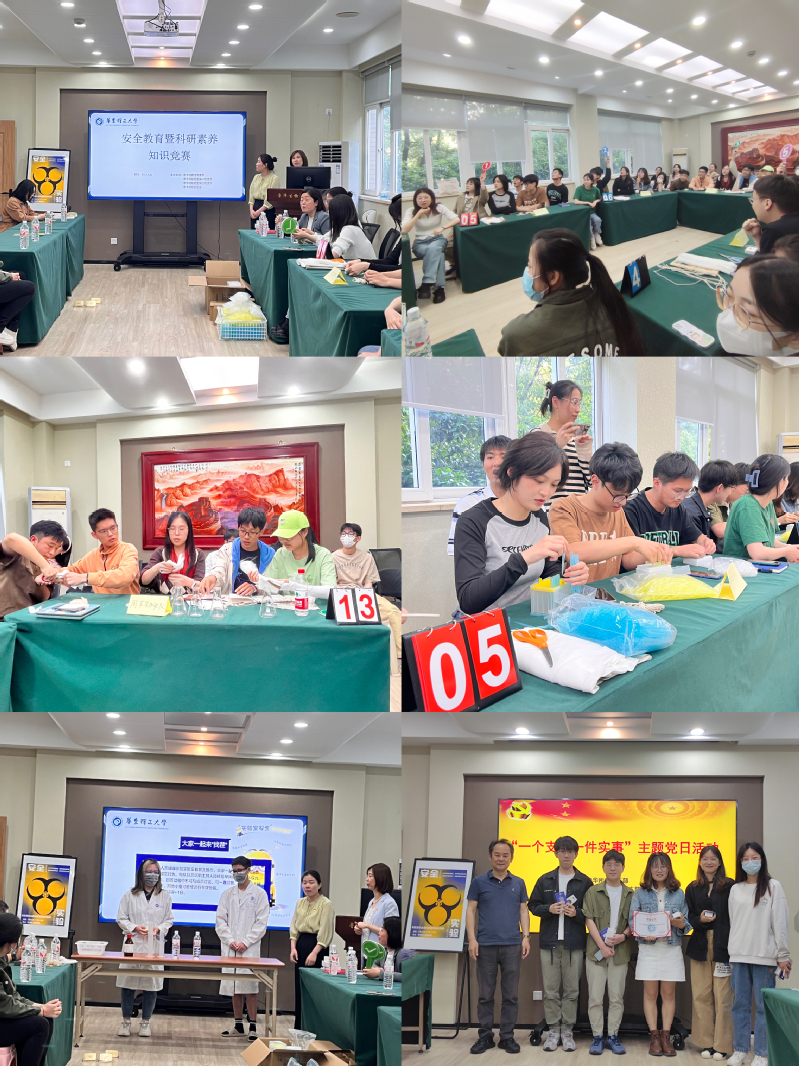随后,为了进一步加深理论教育与反馈学习效果,开展安全教育暨科研素养知识竞赛。通过理论知识抢答、实验操作技能比赛、错误实验情景展示等环节,使研究生们身临其境、寓教于乐,获得了学生们的一致好评。
