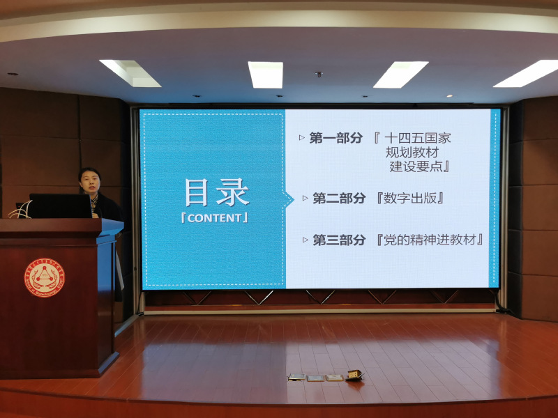 随后,赵玉清作题为“高等教育与教材出版思路探讨—如何做好‘十四五国家级规划教材建设’的学术报告,报告从国家“十四五”规划教材建设要点、数字出版、党的精神进教材三个方面进行讲解,梳理教材编写规划要点,从价值引领、需求导向、分类发展、守正创新等方面逐一介绍。她还针对示范性新形态教材的定义和编写理念重点做了介绍,指出教材编写要体现创新性、数字化、立体化,把党的二十大精神写进教材,体现习近平新时代中国特色社会主义思想,把过去五年和新时代十年伟大变革中的榜样力量、有突出贡献的科技成果和关键技术,把绿水青山理念、“双碳”目标、健康中国2030、大食物观、大健康等理念写入教材,展现新时代中国科技发展的伟大成就,展现绿色发展理念,提升社会责任感。
