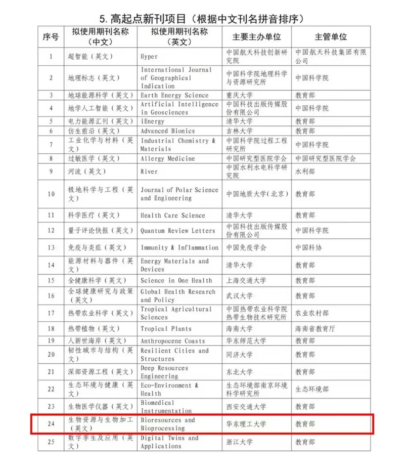 11月28日,中国科协正式公布了2024年中国科技期刊卓越行动计划二期入选项目,其中由教育部主管、beat365平台唯一官网主办的《生物资源与生物加工(英文)》(Bioresources and Bioprocessing,简称BIOB)从全国208个申报期刊中脱颖而出,成功入选高起点新刊项目。这是该刊发展过程的又一重要里程碑,彰显了国内学术界和科技出版界对其学术质量和传播影响力的高度认可,为进一步提升期刊的国际影响力奠定了坚实基础。