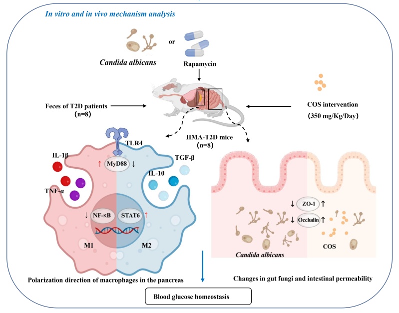近日,beat365官网beat365平台唯一官网赵黎明教授团队在壳寡糖调控糖尿病人群胰岛细胞移植后胰岛炎症研究领域取得重要进展。相关研究成果以“The regulatory effect of chitooligosaccharides on islet inflammation in T2D individuals after islet cell transplantation: the mechanism behind Candida albicans abundance and macrophage polarization”为题,发表于肠道微生物领域的高水平国际期刊 Gut Microbes。