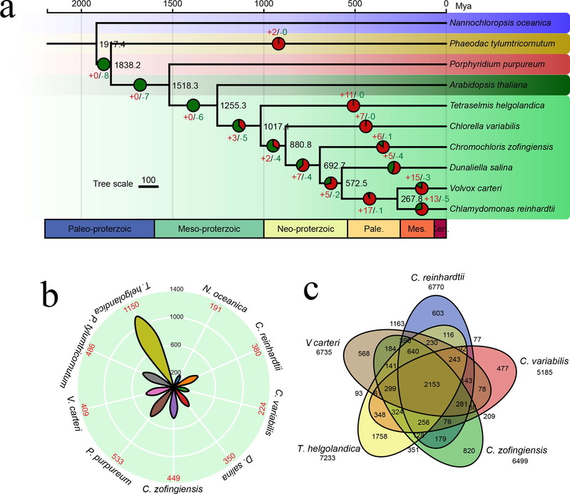 图片说明:扁藻比较基因组分析和基因家族聚类
