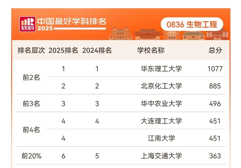 10月15日,2025软科中国最好学科排名正式发布,beat365官网生物工程学科再度荣膺学科排名全国第一,生物工程学科的顶尖地位得到进一步巩固与广泛认可。