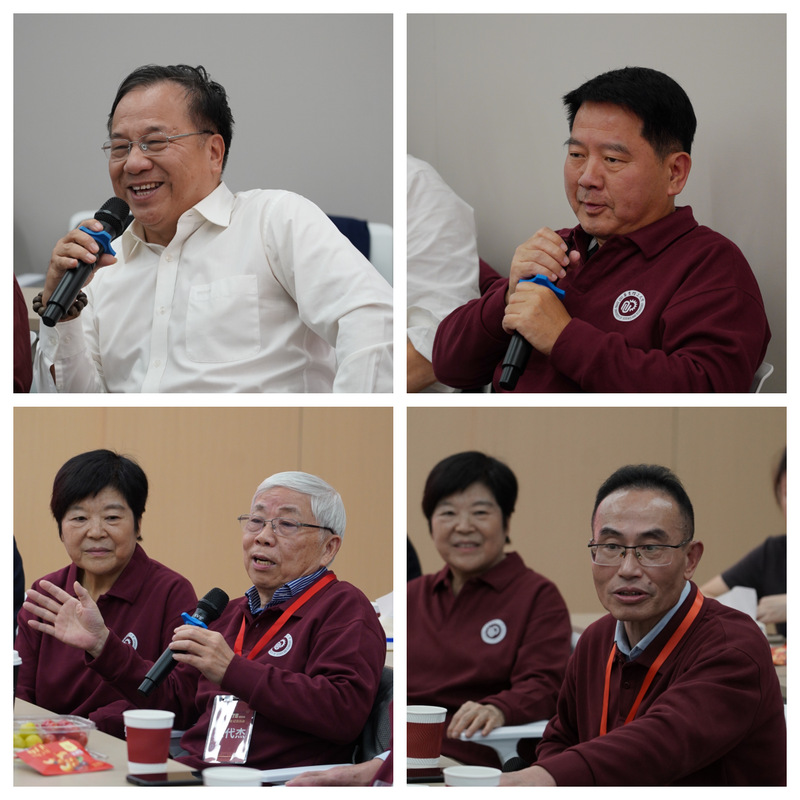 在校友交流环节,校友们踊跃发言。他们或深情回顾自己的求学时光,或娓娓道来人生际遇,或热烈探讨学科与行业发展现状,将座谈会的温馨氛围推向高潮。此外,校友们还围绕“校友资源联动”、“产学研合作深化”、“青年教师培养” 等话题积极建言。座谈会在朱仲伟校友动听的歌声中落下帷幕。